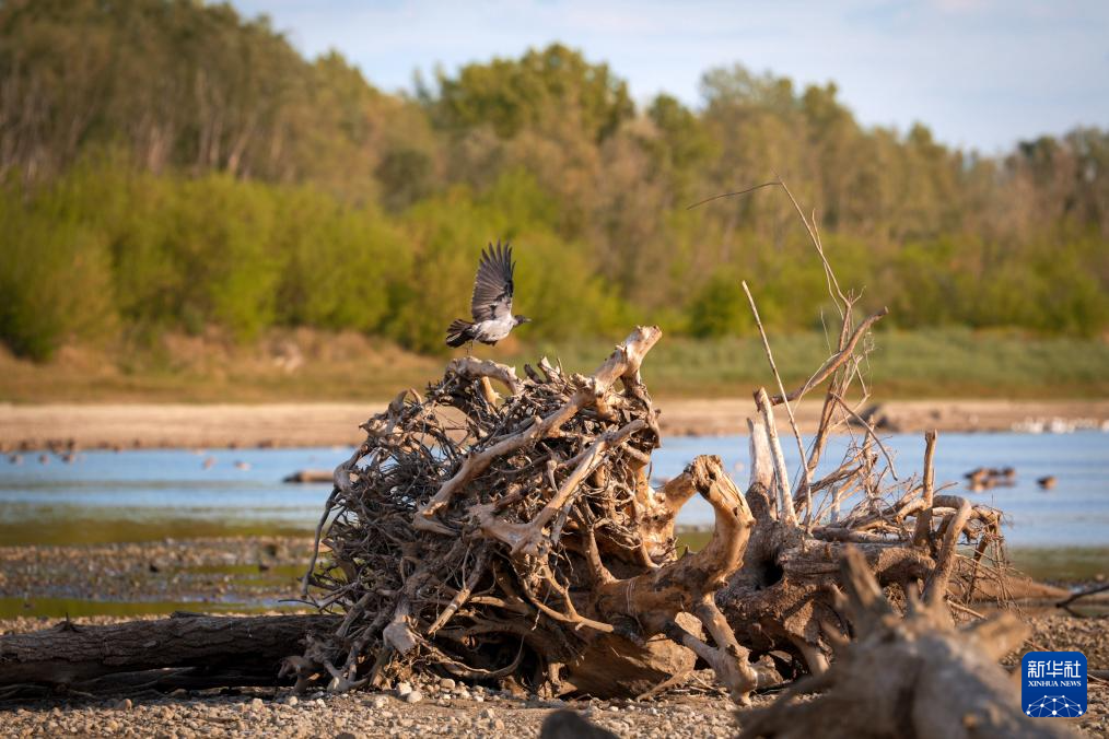 这是8月26日在波兰首都华沙拍摄的维斯图拉河河床上的枯木。