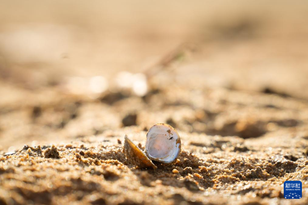 这是8月26日在波兰首都华沙拍摄的维斯图拉河河床上的贝壳。