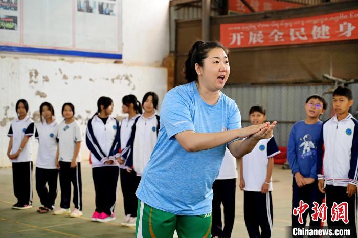 图为女排奥运冠军张娜向学生们介绍气排球训练技巧。萨马兰奇体育发展基金会 供图