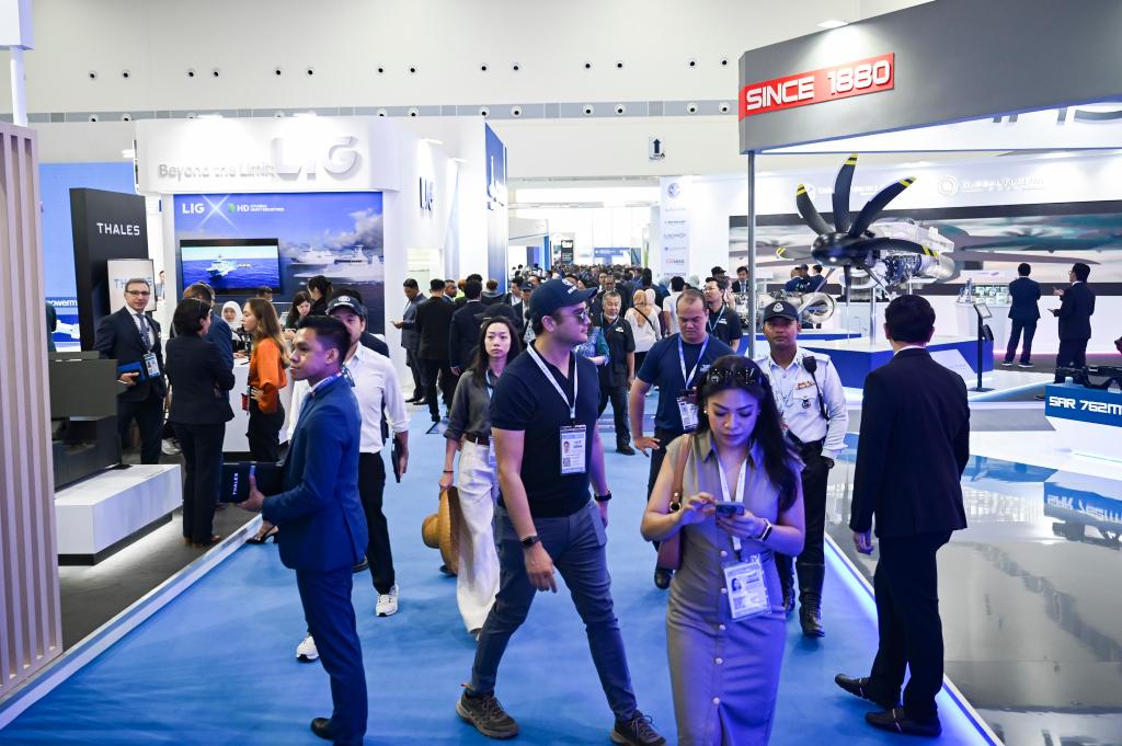 2025年5月20日,观众参观马来西亚兰卡威国际海事和航空展的室内展览。新华社记者程一恒摄