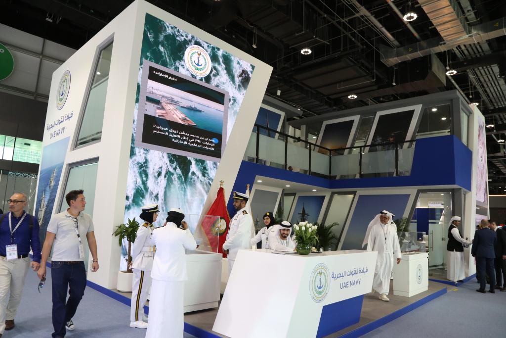 这是2025年2月17日在阿联酋阿布扎比国家展览中心拍摄的防务展阿联酋海军展台。新华社记者温新年摄