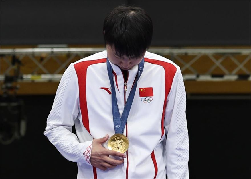 2021年8月2日,在东京奥运会男子25米手枪速射决赛中,李越宏获得铜牌。新华社记者 鞠焕宗 摄