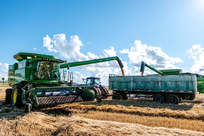 8月20日,呼伦贝尔农垦拉布大林农场的工人驾驶农机将收获的小麦装车。新华社记者 马金瑞 摄