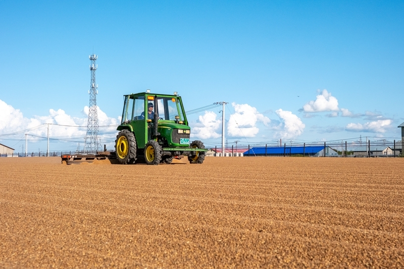 8月20日,呼伦贝尔农垦拉布大林农场的工人驾驶农机翻晒小麦。新华社记者 马金瑞 摄