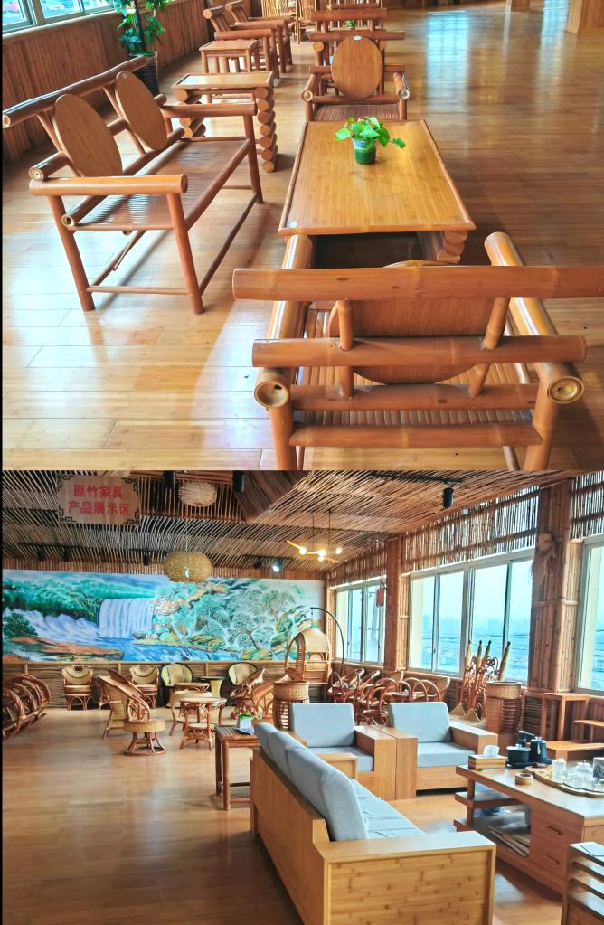 贵州新锦竹木制品有限公司展厅里的竹家具。新华社记者 李惊亚 摄