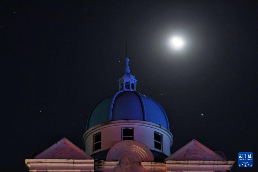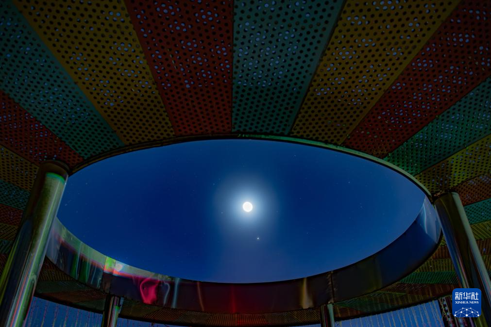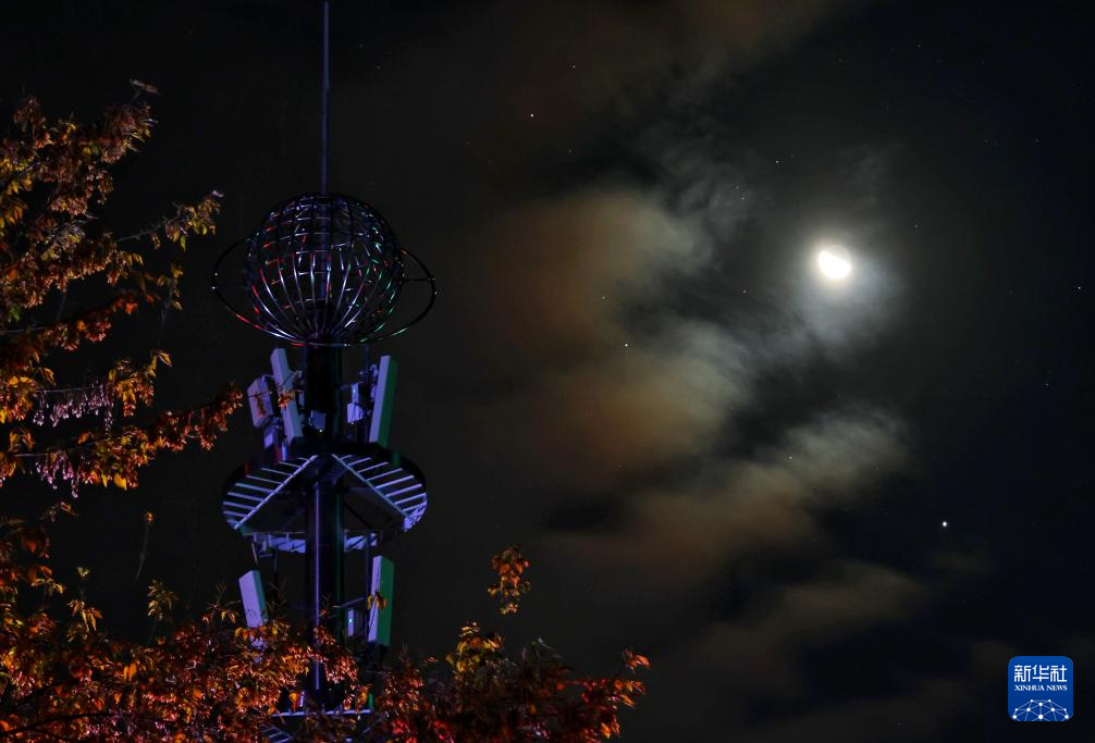10月14日凌晨在黑龙江省佳木斯市同江市拍摄的木星伴弦月。新华社发(刘万平摄)