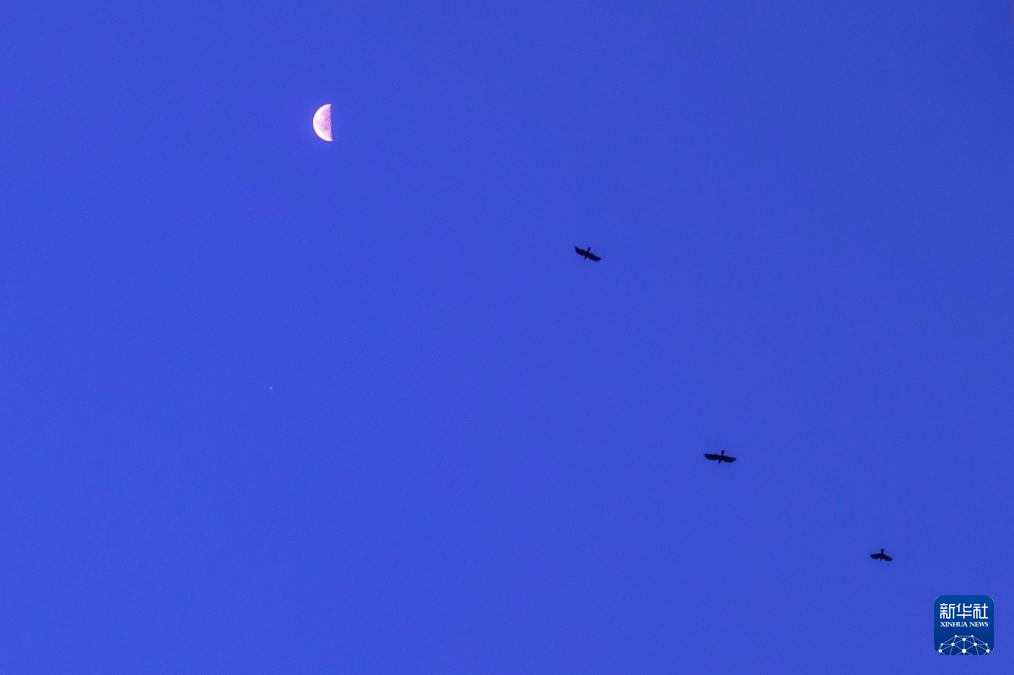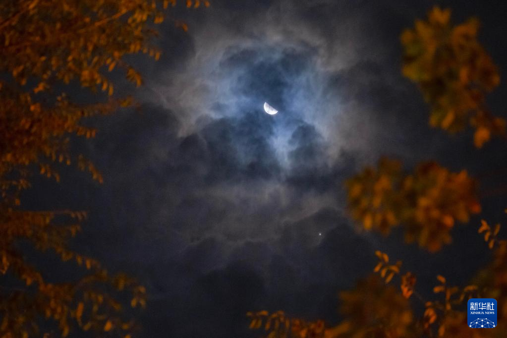10月14日在黑龙江省伊春市嘉荫县拍摄的木星伴弦月。新华社发(李绍军摄)