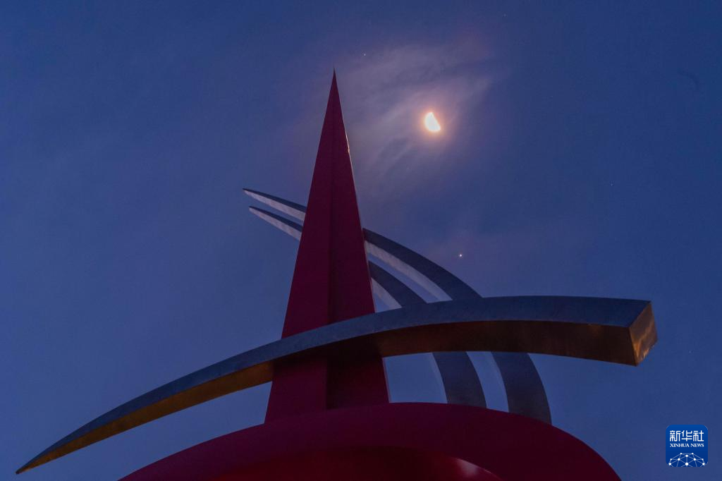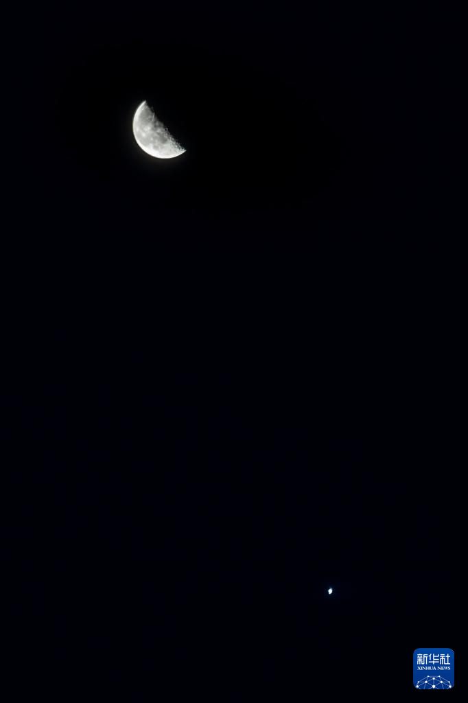 10月14日在黑龙江省齐齐哈尔市拍摄的木星伴弦月。新华社发(王勇刚摄)