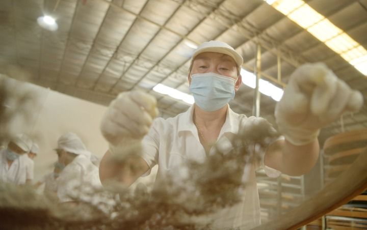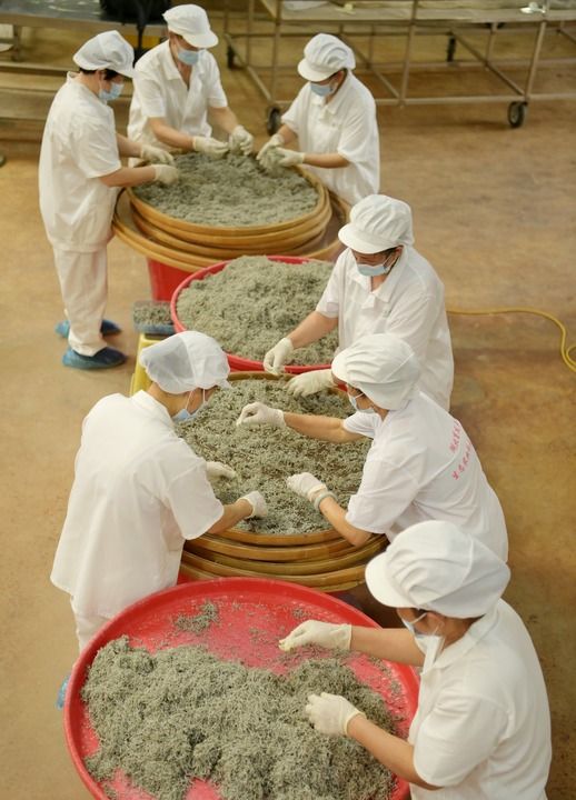 2024年8月1日,工人正在加工藤茶。(杨顺丕摄)