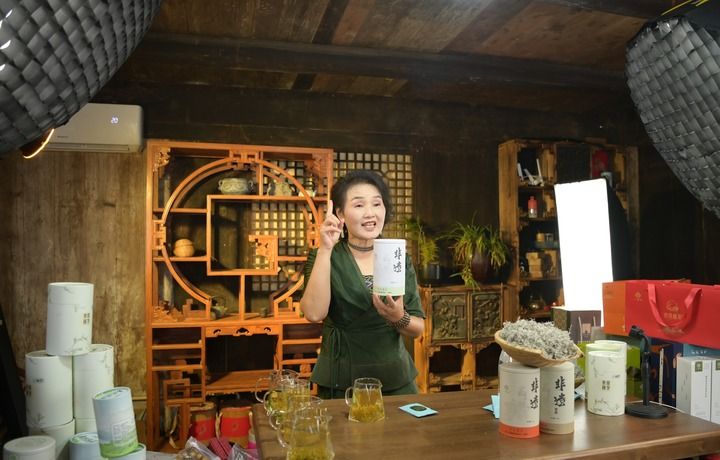 “说此茶,道此茶,此茶清明前发芽,今天网友尝一下。”湖北酉凤来硒生态农业科技有限公司董事长杨艺琼穿上土家族传统服饰,站在土家族老屋里,正富有激情地直播。