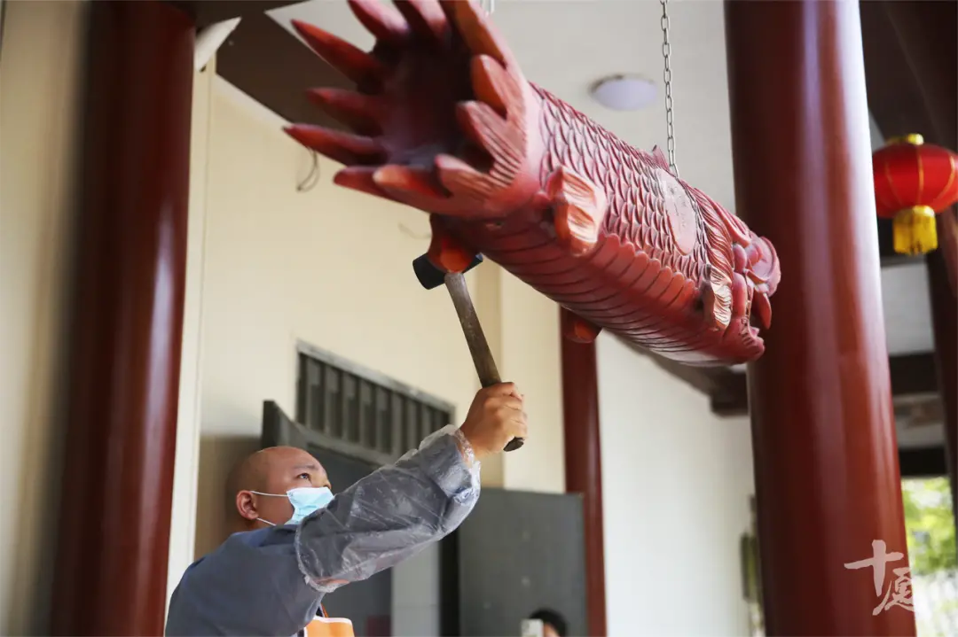 敲钟在佛门中具有断烦恼的作用,警醒修行者勤进勿放逸。钟代表“妙音王菩萨”。