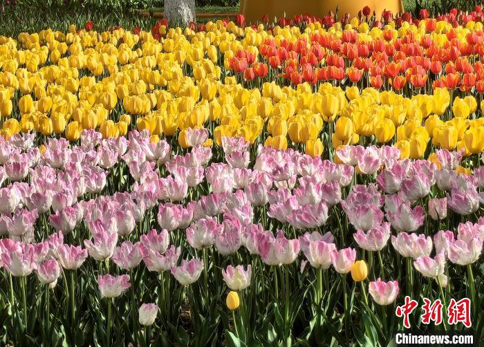 图为西宁市人民公园内各色郁金香绽放。祁增蓓 摄