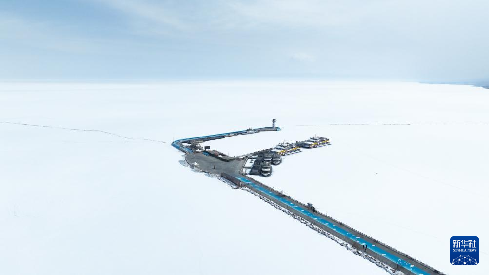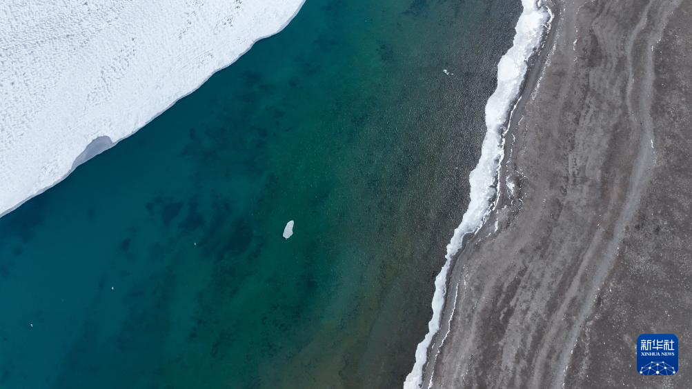 近日,随着天气转暖,青海湖出现解冻迹象。