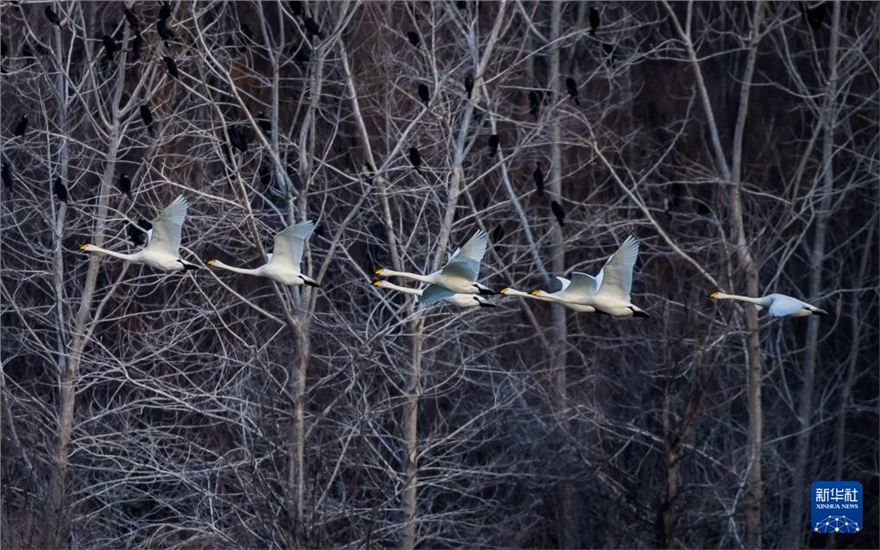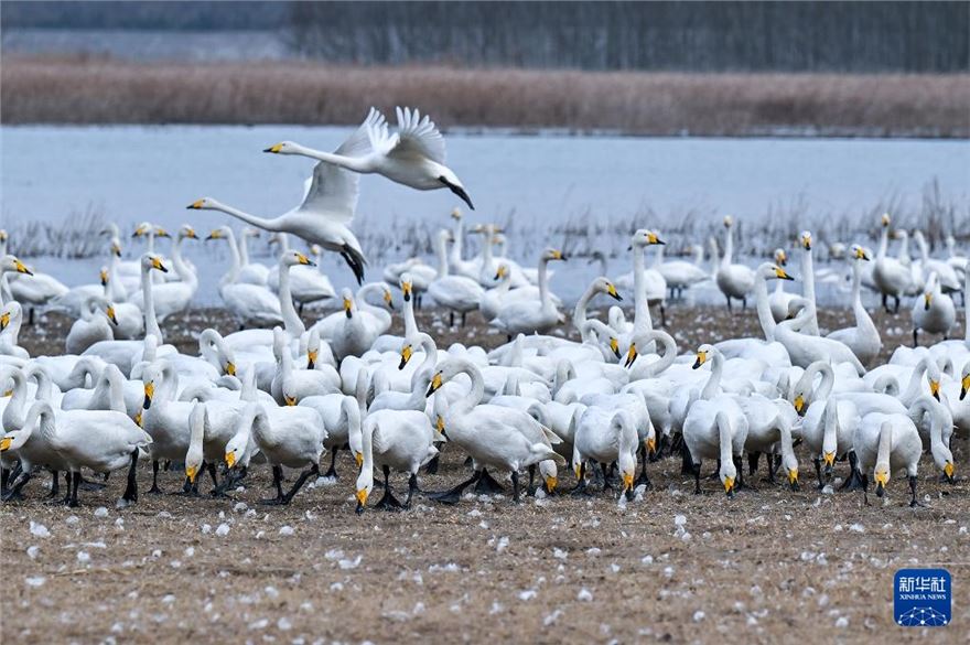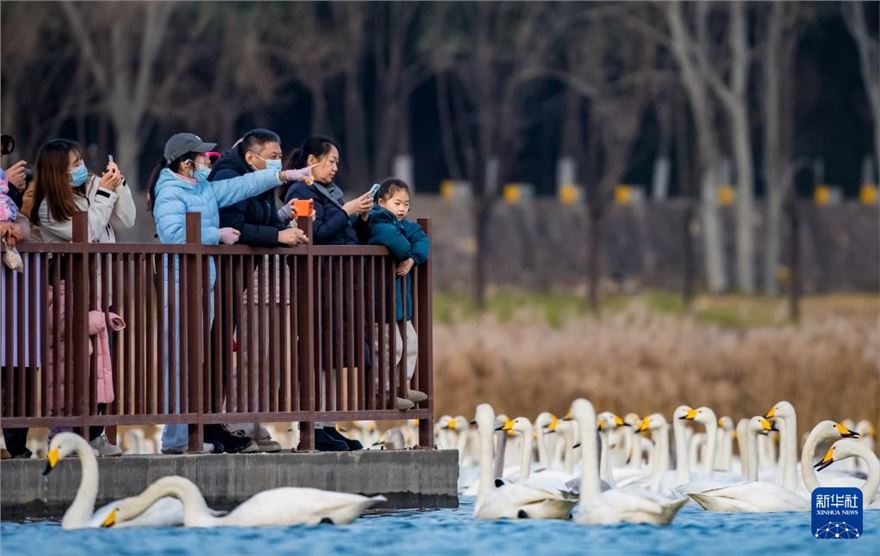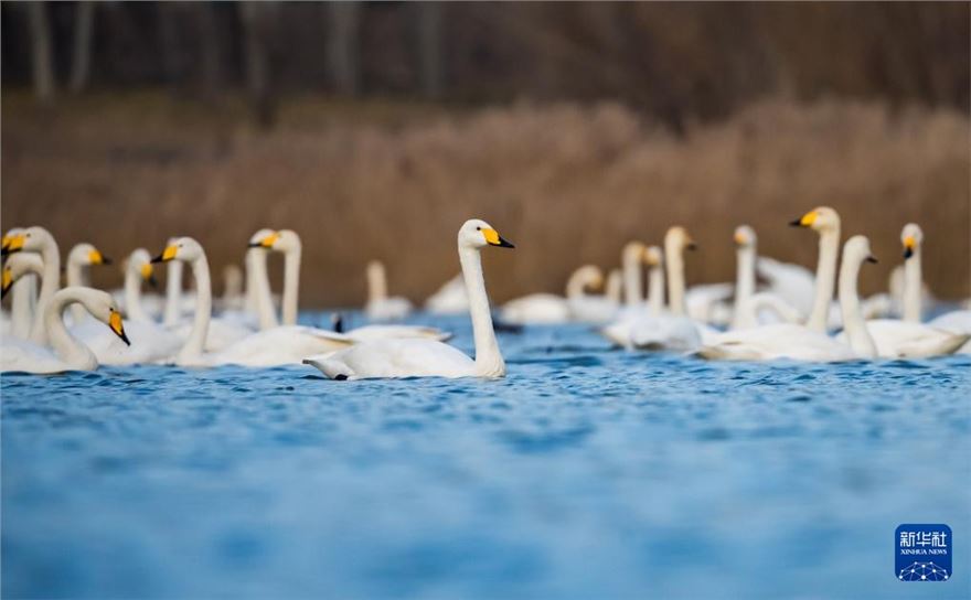 进入冬季,大批白天鹅来到河南省三门峡市黄河湿地栖息越冬。近年来,随着当地不断加强黄河沿岸湿地生态保护工作,白天鹅的数量逐年增加。目前,三门峡黄河岸边40余万亩浅滩湿地已迎来万余只白天鹅。