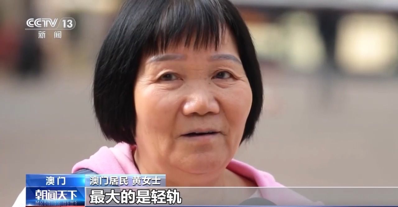 澳门居民 何女士:现在有轻轨了,2日开通,去横琴的。越来越方便,大湾区一小时的交通圈,可以去中山、珠海好多地方,现在方便多了。