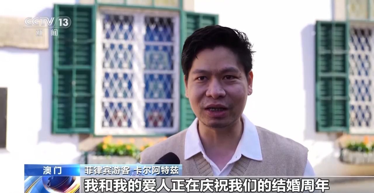 菲律宾游客 卡尔阿特兹:这是我第一次来澳门,澳门最令我印象深刻的是风景很美。我和我的爱人正在庆祝我们的结婚周年,澳门正是我们梦想的旅游目的地。