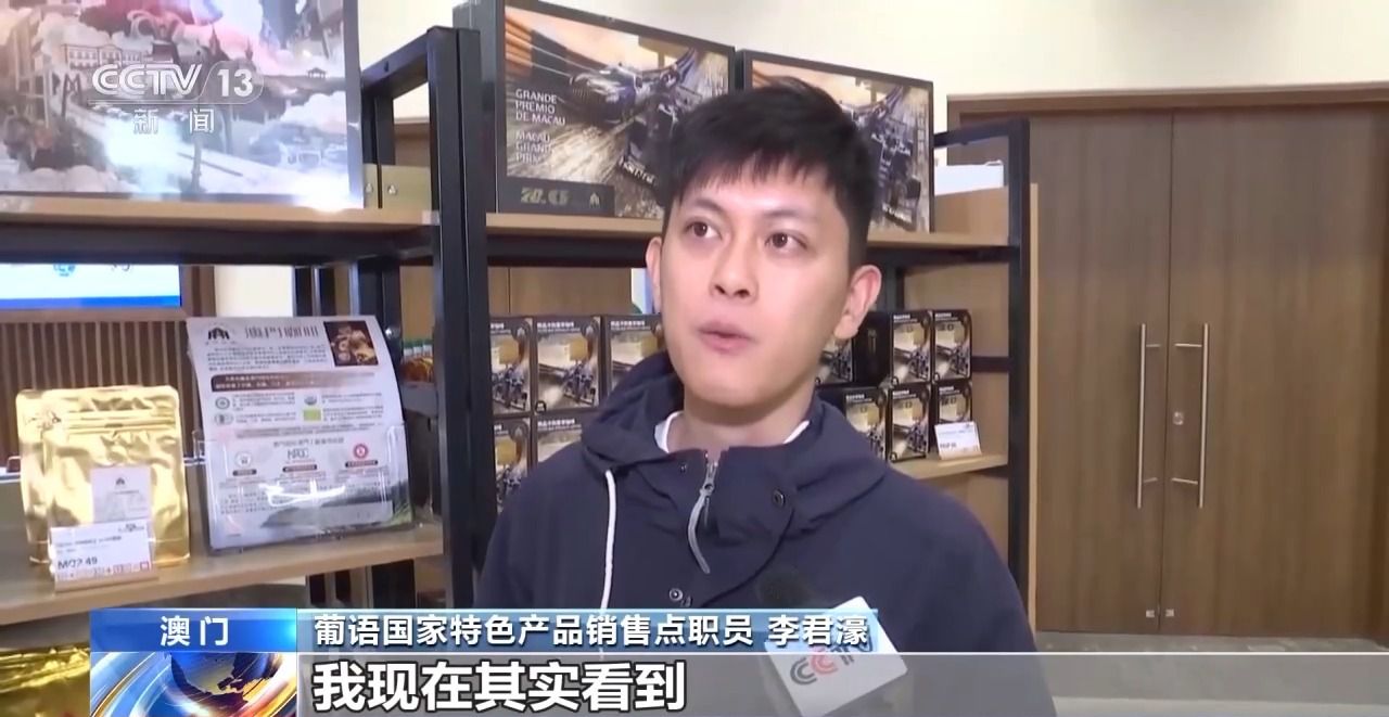葡语国家特色产品销售点职员 李君濠:一个关键词的话,我现在其实看到,每天都有新的项目在开展,每天都有新的东西在出现,应该说是“发展”吧。就是从基建到一些生活的东西,其实每一天我看新闻都有新的东西出来,给我的感觉就是,澳门还继续有发展,继续有明天。