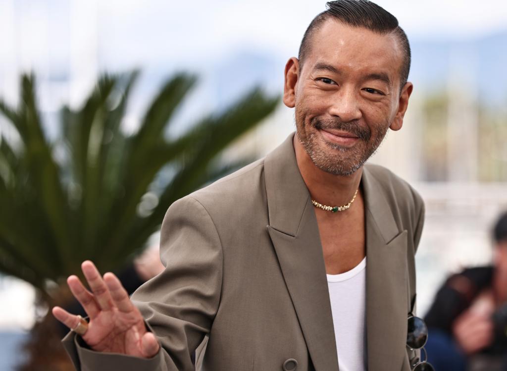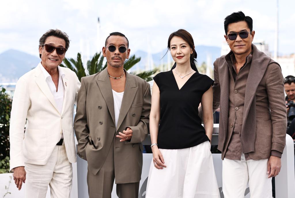 5月17日,在法国戛纳举行的第78届戛纳国际电影节上,影片《风林火山》导演麦浚龙亮相拍照式。新华社记者 高静 摄