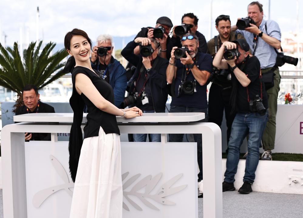 5月17日,在法国戛纳举行的第78届戛纳国际电影节上,影片《风林火山》主演高圆圆亮相拍照式。新华社记者 高静 摄