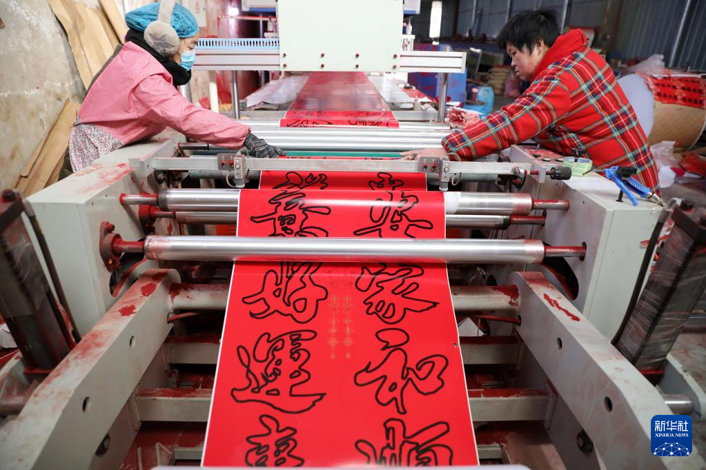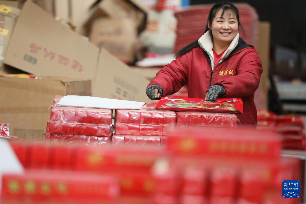春节临近,河南省焦作市温县赵堡镇赵堡村迎来春节饰品产销旺季,村民们加紧赶制春联、年画等春节装饰品供应市场。