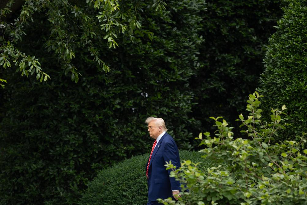 5月30日,在华盛顿白宫,美国总统特朗普走向南草坪准备登机。新华社记者胡友松摄