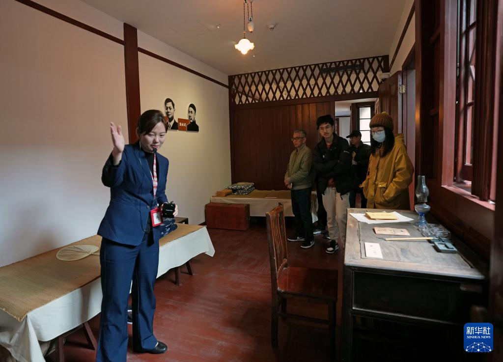 3月24日,讲解员引导观众在中共一大代表宿舍旧址内参观。新华社记者 刘颖 摄