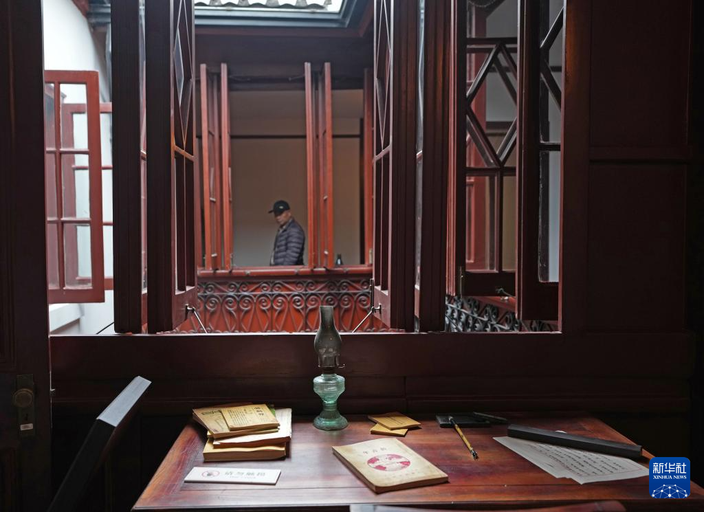 3月24日在旧址内拍摄的经过场景复原展示的书桌。新华社记者 刘颖 摄