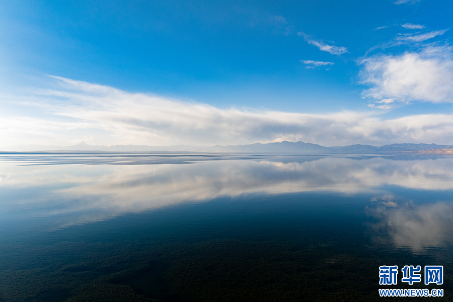 玛旁雍错清澈的湖面(6月9日摄,无人机照片)。新华网 旦增努布 摄