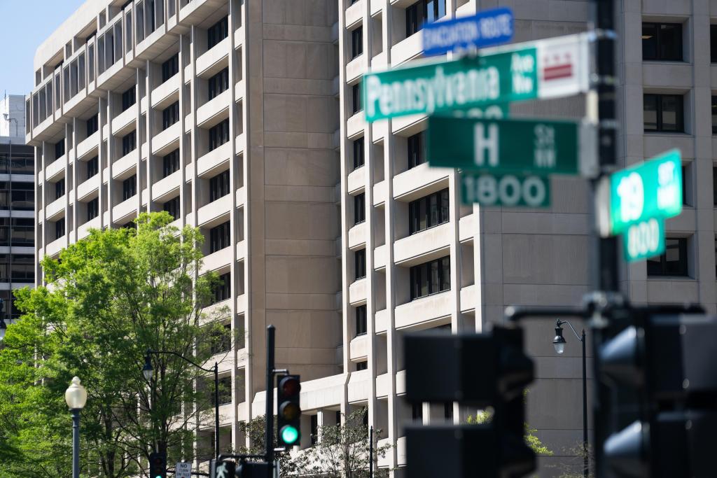 这是4月16日在美国华盛顿拍摄的国际货币基金组织总部。新华社记者刘杰摄
