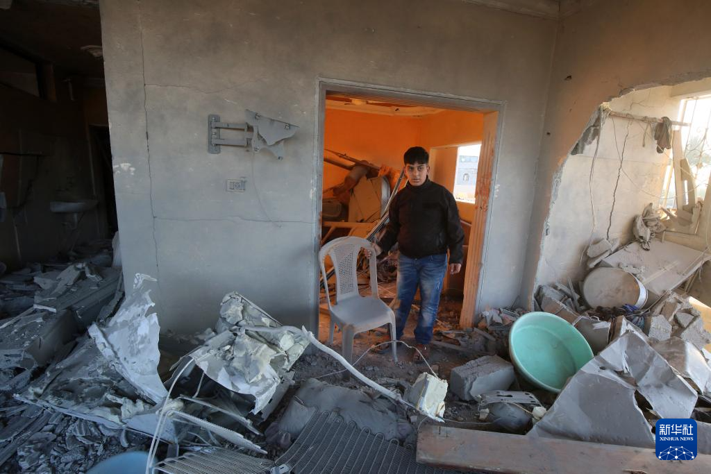 1月8日,在加沙地带中部城市代尔拜拉赫,一名巴勒斯坦男子在以军轰炸后的建筑内查看。新华社发(里泽克·阿卜杜勒贾瓦德 摄)