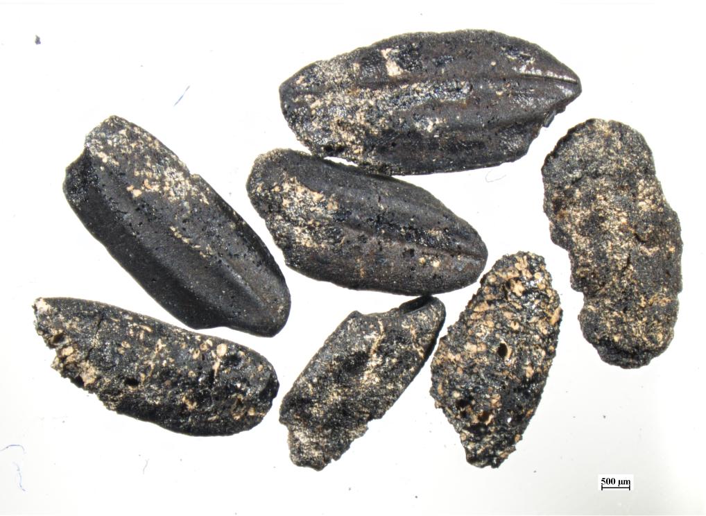 图为李家岗遗址出土的炭化稻米。新华社发