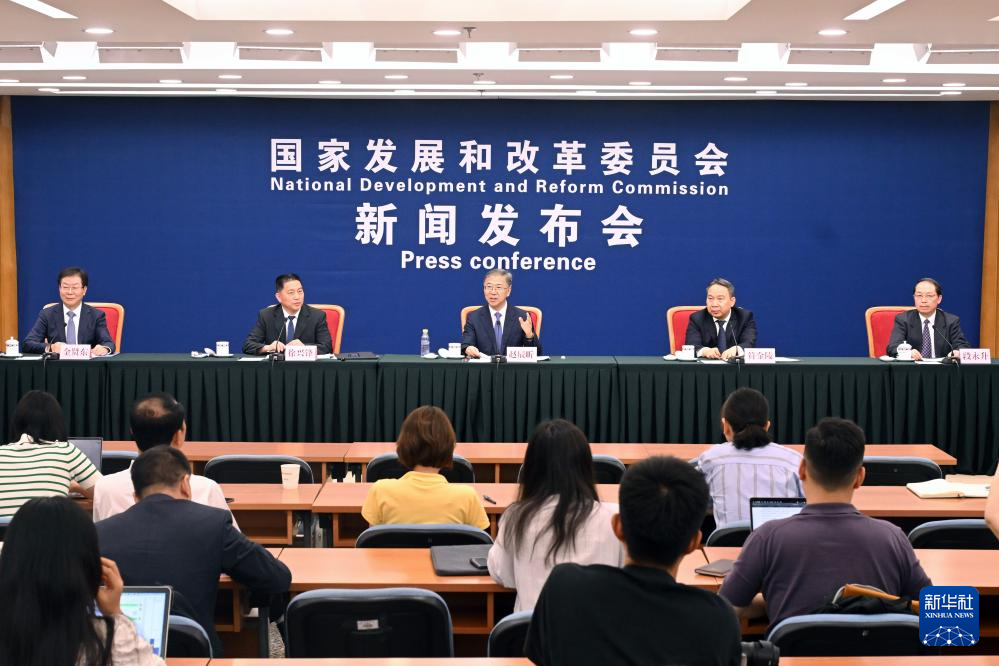 7月25日,国家发展改革委在北京举行专题新闻发布会,介绍《关于加力支持大规模设备更新和消费品以旧换新的若干措施》有关情况。新华社发(高弘杰摄)