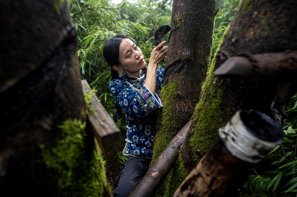 朱黎放弃原本稳定的电视台工作,进入生漆行业。她用半年时间走访调查,最后选中了恩施市青堡村作为漆树发展基地。2022年,她开始在青堡村进行漆树保护、补栽和带徒传艺等工作。截至今年8月,该村已有存活漆树5000株,年产漆1.5吨。