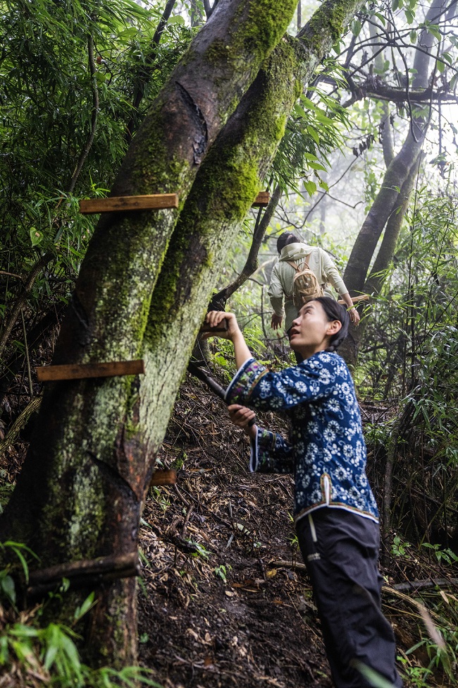 图为朱黎在恩施市龙凤镇中岭湾村漆林走访漆农了解今年割漆情况。新华网发 文林 摄