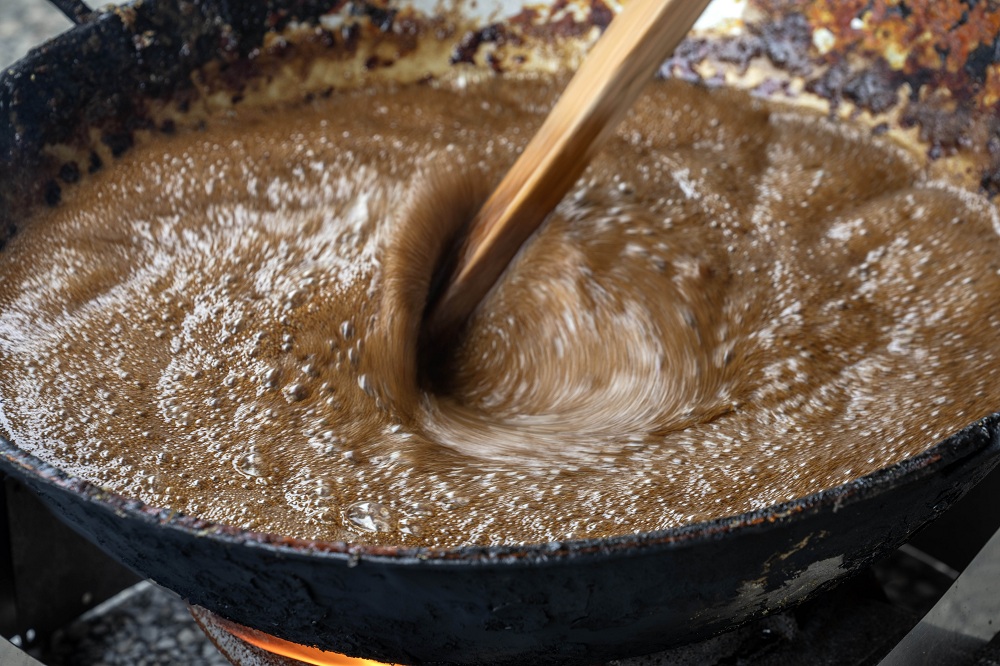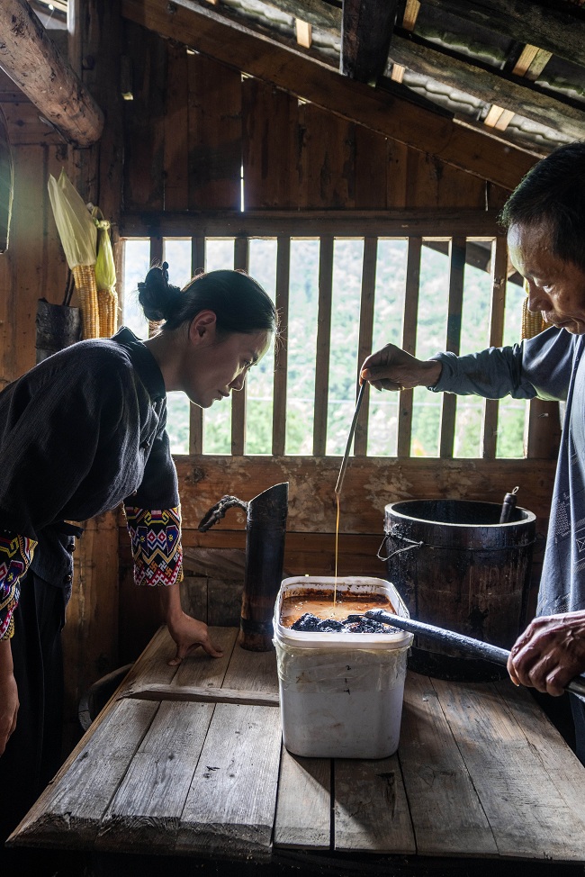 图为朱黎在恩施市青堡村熬制的生漆。新华网发 文林 摄