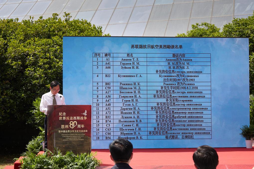 今年是中国人民抗日战争暨世界反法西斯战争胜利80周年。舆论认为,苏联籍抗日航空英烈信息更新,是缅怀英烈、铭记历史。