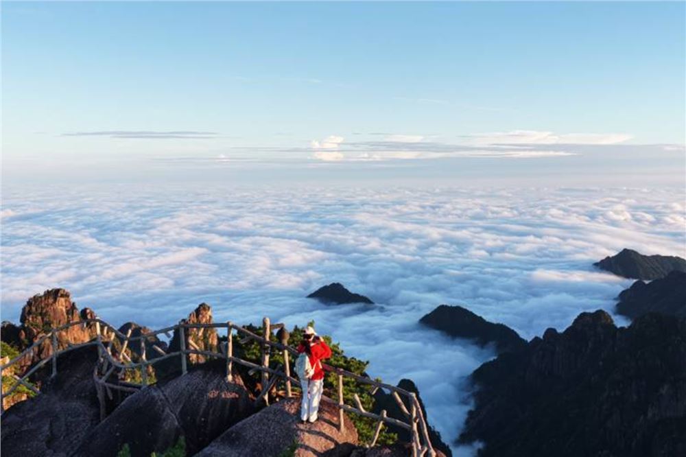 夏日清晨,伴随着旭日东升,灿若锦绣的云霞肆意铺展在黄山的千峰万壑间,与奇松、怪石齐聚同框,绘就出一幅幅浓墨重彩的油画,令人心潮澎湃。