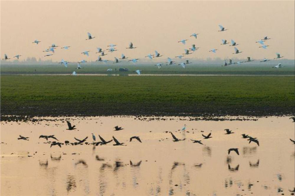 候鸟飞过洞庭湖