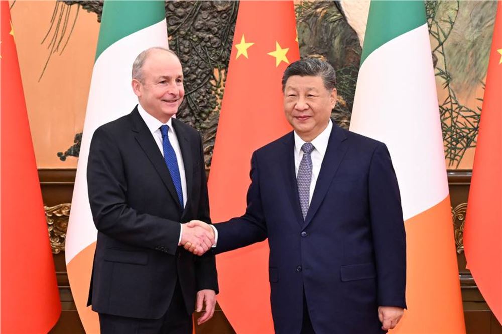 1月5日上午,国家主席习近平在北京人民大会堂会见来华进行正式访问的爱尔兰总理马丁。习近平指出,中国和爱尔兰都爱好和平、开放包容、自立进取,两国人民通过斗争赢得国家独立和民族解放,依靠几代人接续奋斗迈向现代化。习近平指出,当今世界变乱交织,单边霸凌行径严重冲击国际秩序。