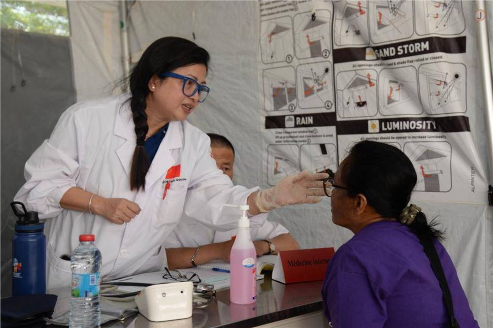 10月21日,在马达加斯加塔那那利佛北郊的阿努西亚拉医院,第24批中国援马达加斯加医疗队队员为当地民众义诊。中国甘肃省自1975年开始向马达加斯加派遣援外医疗队,迄今已满50年。第24批中国援马医疗队共32名成员,于今年6月抵马,在马全国4个医疗点提供卫生服务。