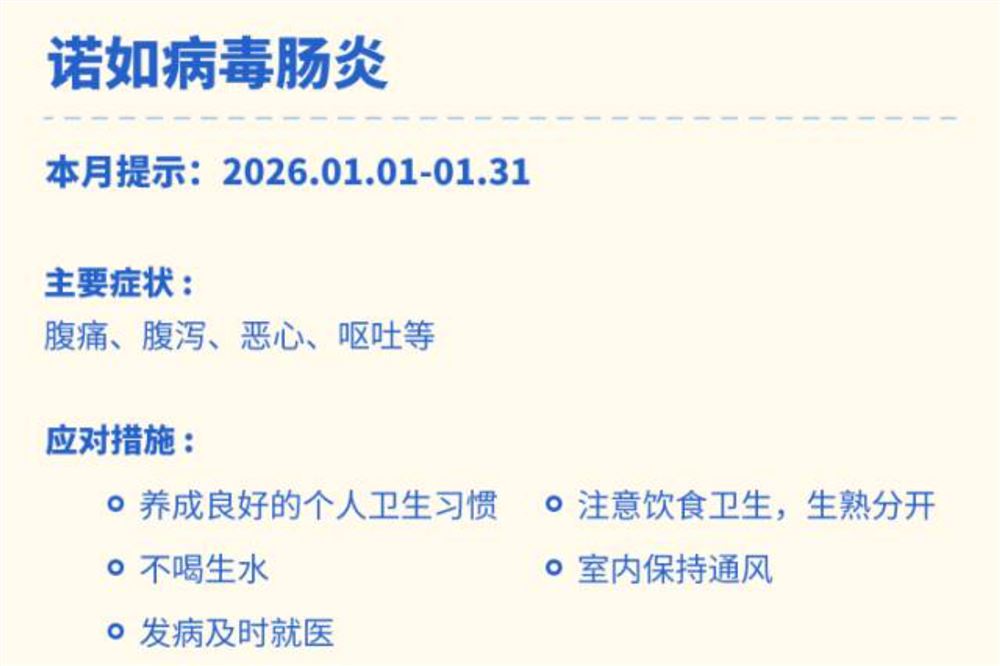 1月6日记者从湖南省疾病预防控制中心了解到该中心已经发布2026年1月疾病风险预报全省防疫指数升至Ⅱ级(较高)据介绍,本月湖南需重点关注诺如病毒肠炎与流行性感冒等急性呼吸道传染病,其中诺如病毒感染风险尤为突出。