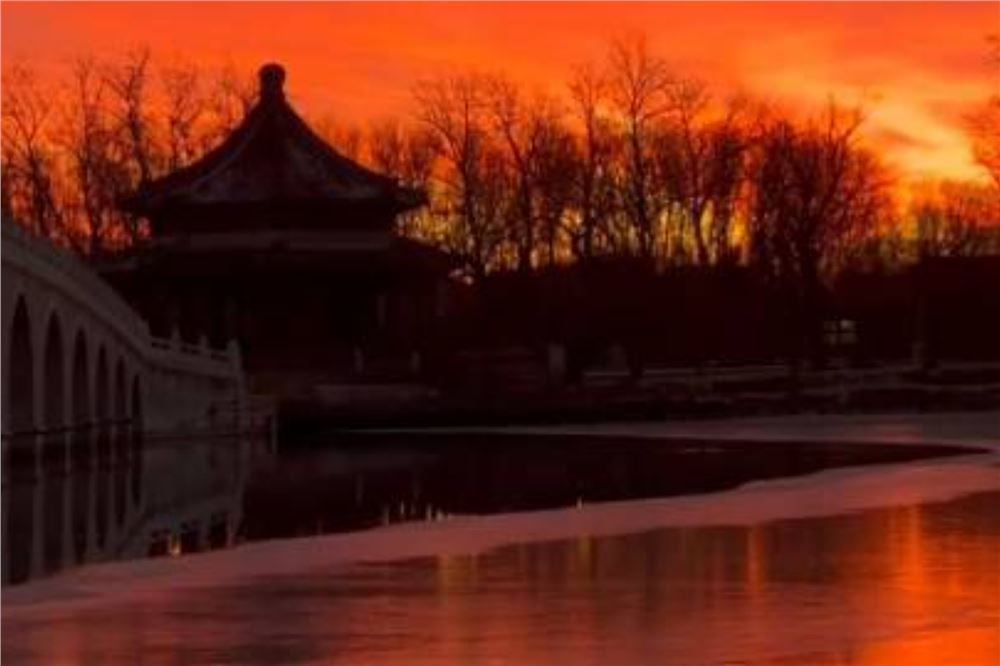 北京冬日朝霞满天